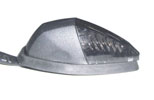 Triangle Stalk Mount Type. Black Body, Amber Lens with Amber LED's 12v "DC ONLY POWER" wire length 30" Universal left or right side decorative marker light Mounts on Front Or Rear of machine 1.5" h X 1.75" w end to stem. Very bright 10 leds in amber or smoke lens, will withstand off road abuse! |