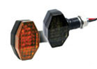 Octagon Stalk Mount Type. Black Body, Amber Lens with Amber LED's 12v "DC ONLY POWER" wire length 30" universal left or right side decorative marker light Mounts on Front Or Rear of machine 1.75" lens top 2 bottom X 1 1/4 width end to stem. Very bright 10 leds in amber or smoke lens, will withstand off road abuse! |